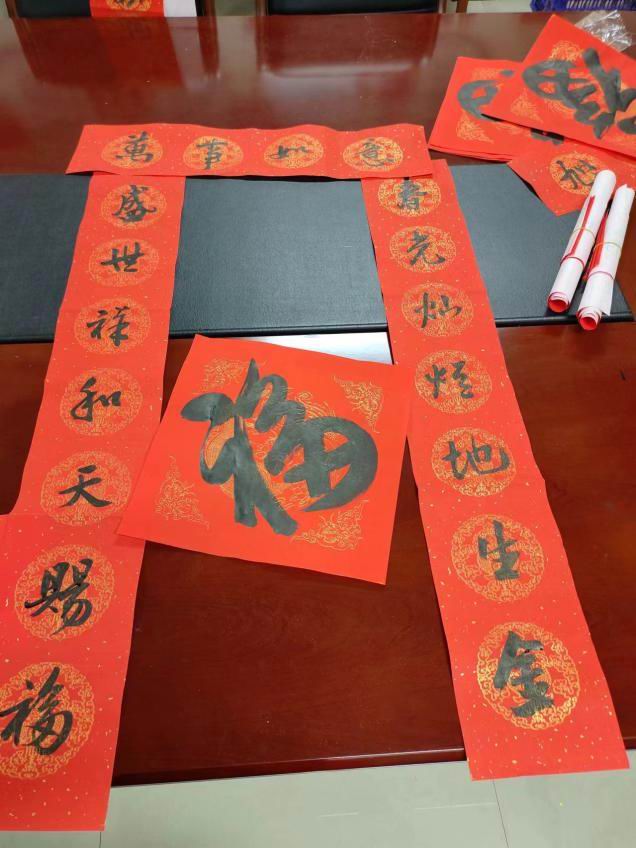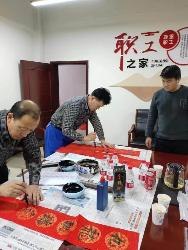 在春節(jié)來臨之際實(shí)業(yè)公司工會(huì)邀請(qǐng)萬基書法愛好者書寫春聯(lián)400余副,將喜迎春節(jié)的年味和新春祝福送給各位職工。